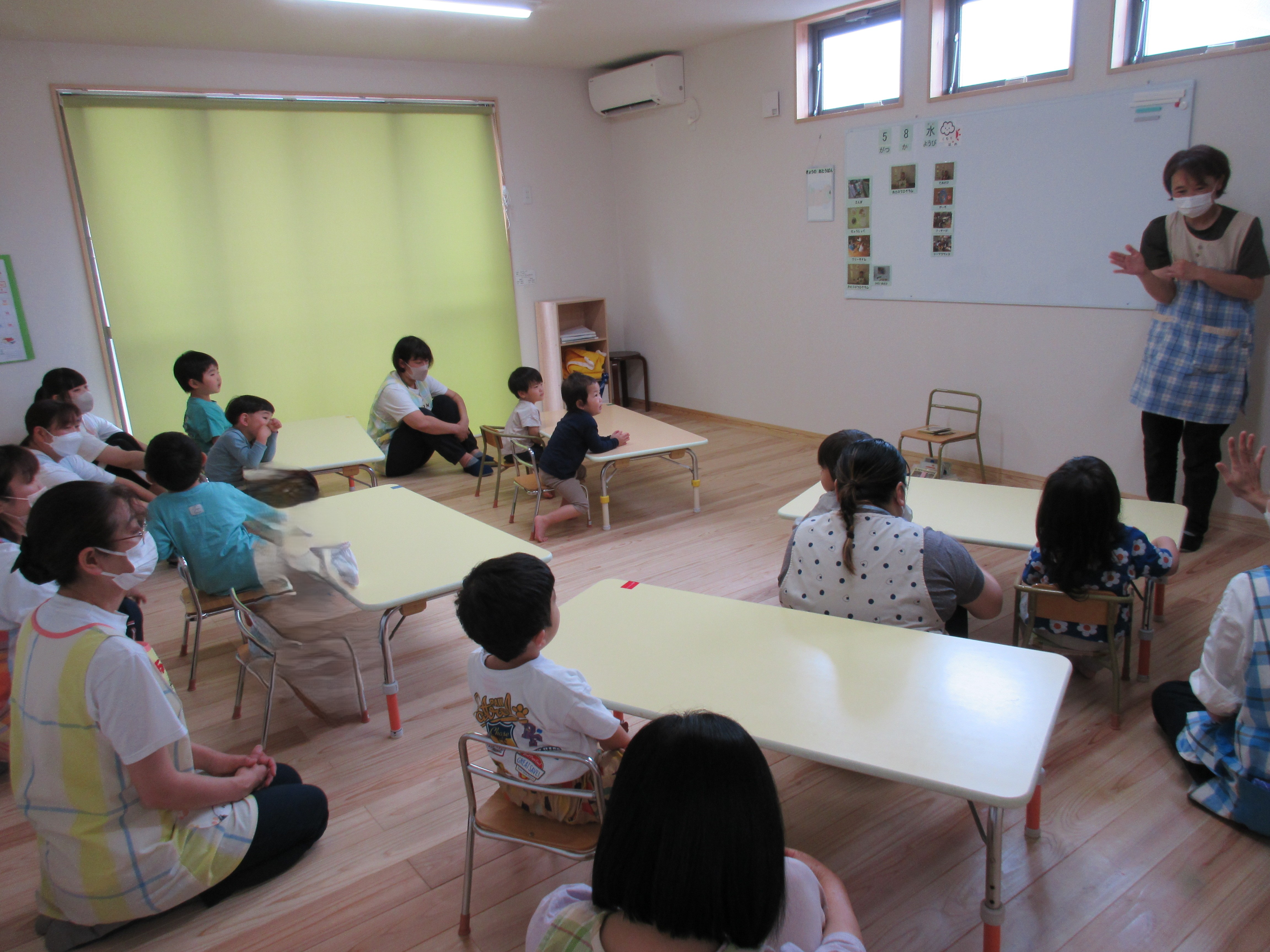 みんな座って集団に参加することができます