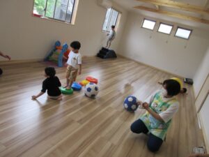 雨天時は室内活動 リズム遊び、サーキット遊び、季節の制作など